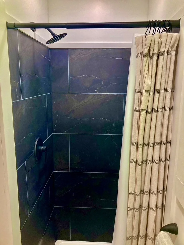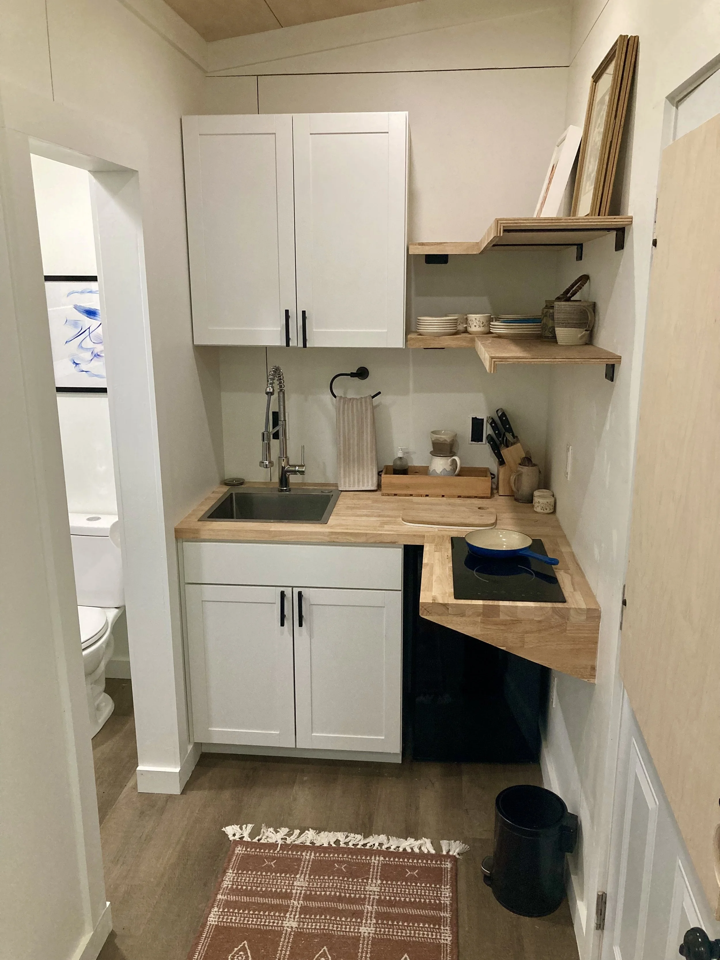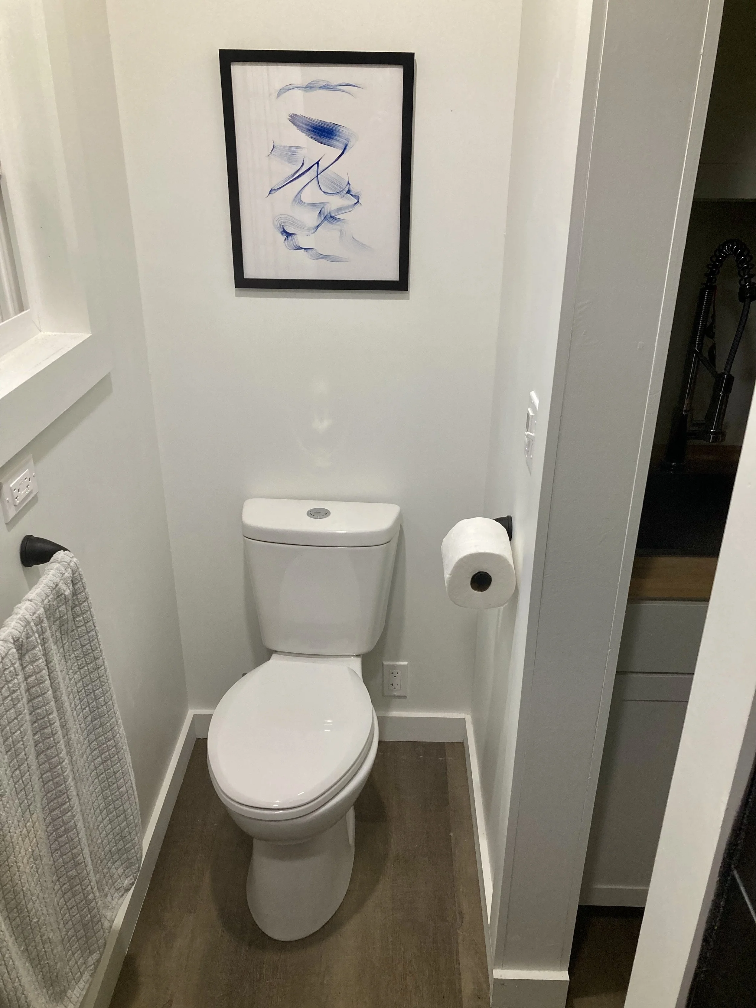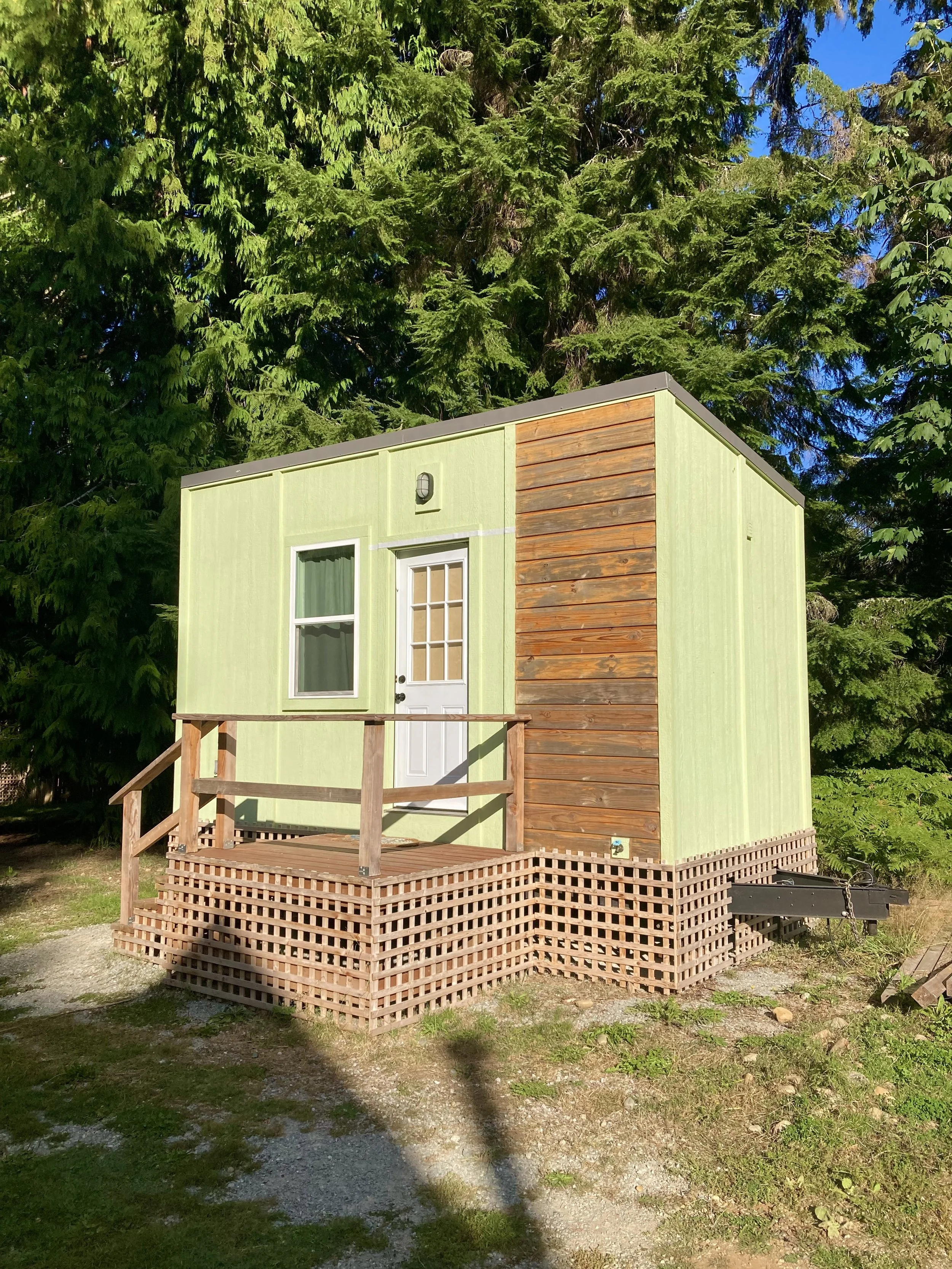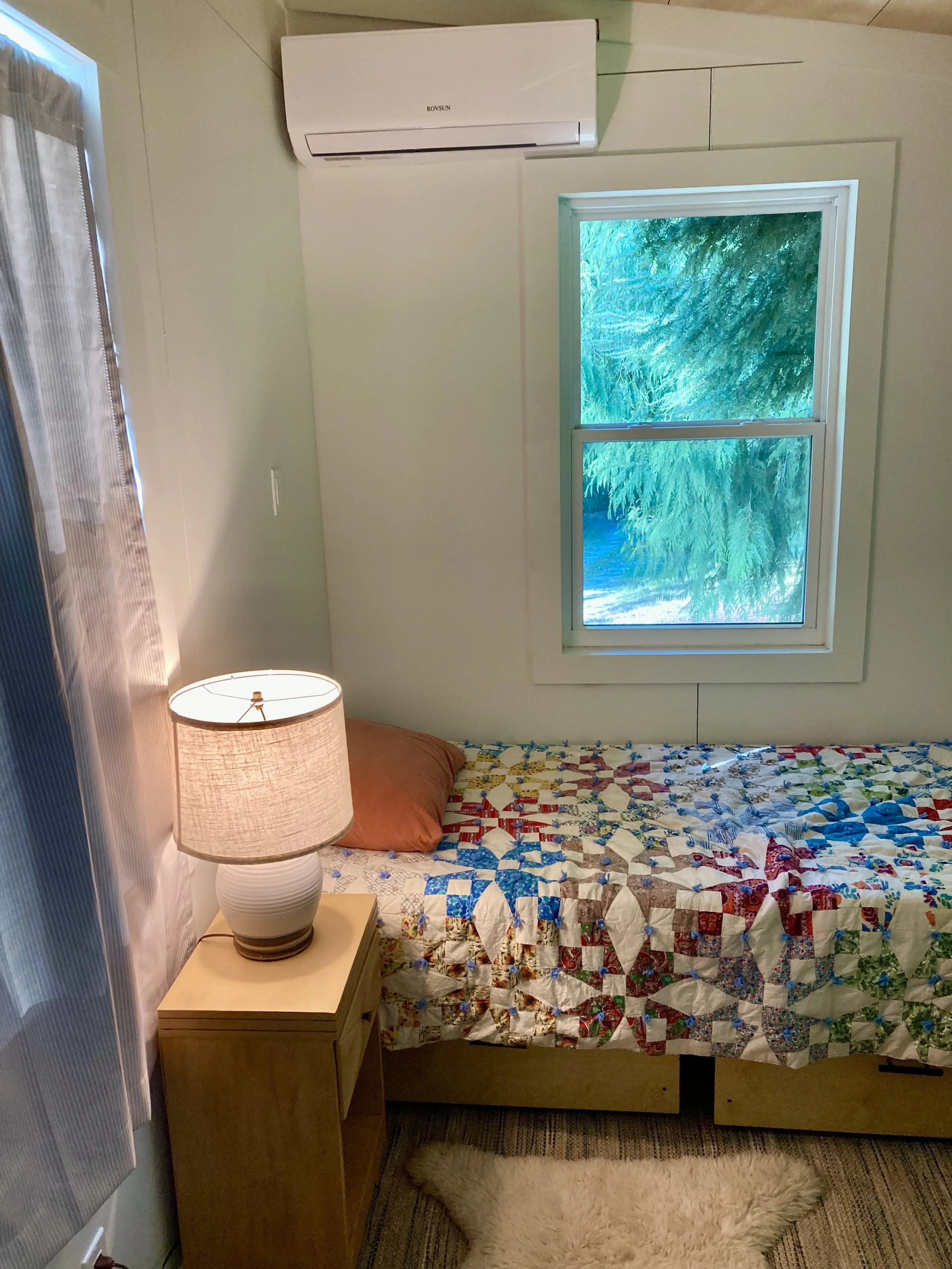 We run dark retreats in a tiny home on wheels, which we black out using removable light blocking panels. It features a shower, flushing toilet, sink, and twin bed.